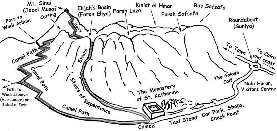 Il monastero di santa Caterina è un antichissimo e importantissimo centro monastico ortodosso. E situato in una regione desertica formata da roccia di granito e da alte montagne e ad una prima occhiata, sembra inaccessibile. Le montagne che dominano questa regione sono il Horeb (2.285 m. di altezza), Il Caterine (2.637 m. di altezza), il Serbal (2.070 m. di altezza) e il Episteme.
